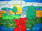 In mijn aquarellen overheersen de blauwgroene tinten. De olieverven daarentegen zijn sterker van kleur en lijn.